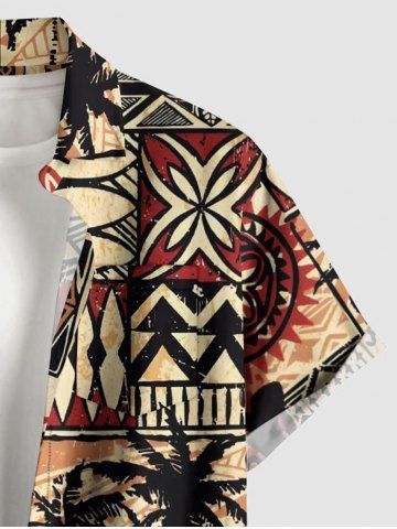 Plus Size Ethnic Coconut Tree Seascape Geometric Pattern Print Buttons Pocket Hawaii Shirt For Men - Tan - Xl