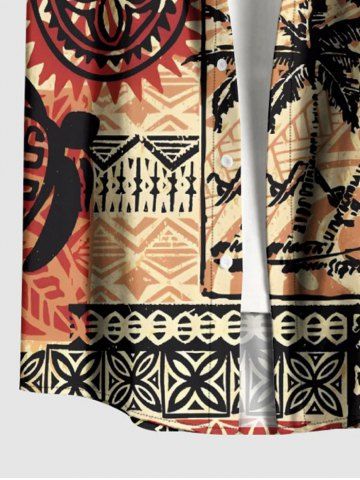 Plus Size Ethnic Coconut Tree Seascape Geometric Pattern Print Buttons Pocket Hawaii Shirt For Men - Tan - 3xl