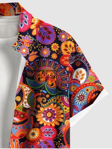 Short Sleeves Shirts > Plus Size Ethnic Colorful Flowers Paisley Owl Print Buttons Pocket Hawaii Shirt For Men