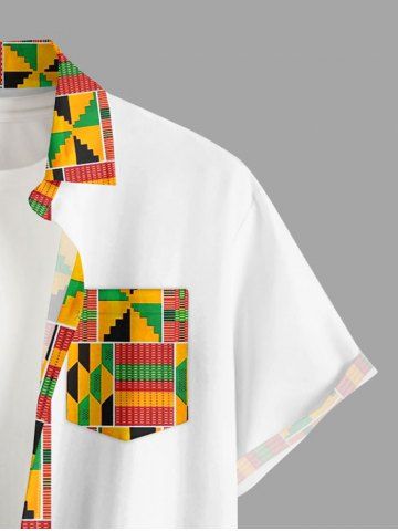 Short Sleeves Shirts > Plus Size Ethnic Geometric Pattern Print Buttons Pocket Hawaii Shirt For Men