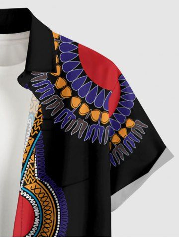 Plus Size Ethnic Geometric Pattern Print Buttons Pocket Hawaii Shirt For Men - Black - 3xl