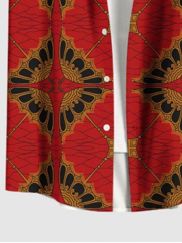 Plus Size Ethnic Graphic Print Hawaii Button Pocket Shirt For Men - Red - 2xl