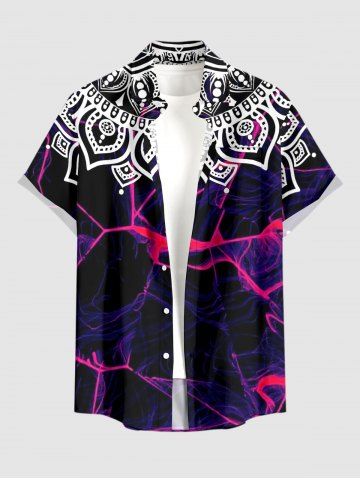 Plus Size Ethnic Graphic Tie Dye Print Hawaii Button Pocket Shirt For Men - Concord - 3xl