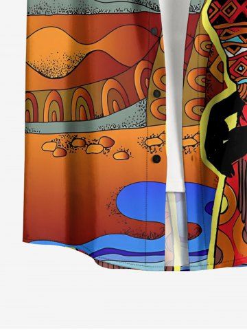 Plus Size Ethnic Lady Sun Print Buttons Pocket Hawaii Shirt For Men - Orange - M