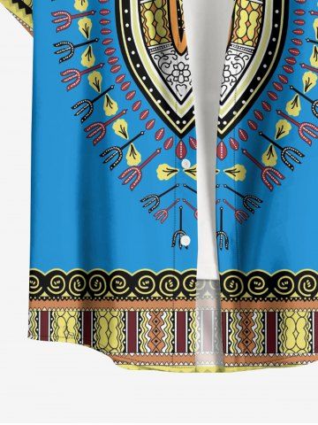 Plus Size Ethnic Pattern Print Buttons Pocket Hawaii Shirt For Men - Blue - S