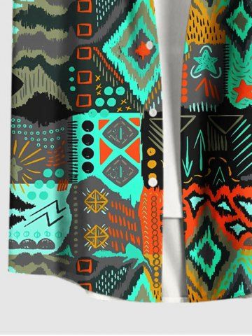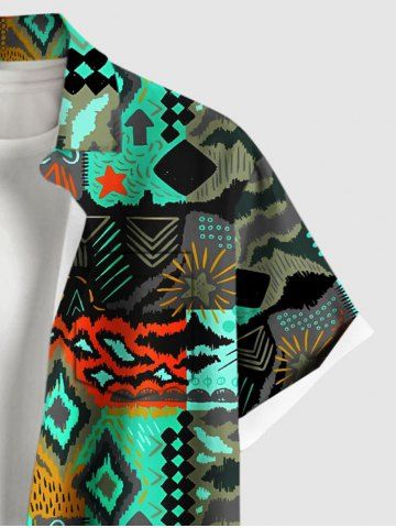 Plus Size Ethnic Pattern Print Buttons Pocket Hawaii Shirt For Men - Green - S