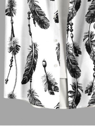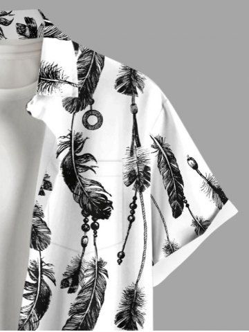 Plus Size Feather Tassel Print Hawaii Button Pocket Shirt For Men - White - 4xl
