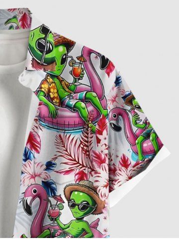 Short Sleeves Shirts > Plus Size Flamingo Alien Tropical Leaf Flower Print Buttons Pocket Hawaii Shirt For Men