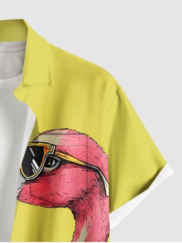 Plus Size Flamingo Coconut Tree Fruit Juice Seascape Print Buttons Pocket Hawaii Shirt For Men - Yellow - 6xl