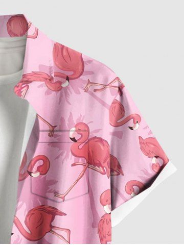 Plus Size Flamingo Coconut Tree Print Buttons Pocket Hawaii Shirt For Men - Light Pink - 5xl