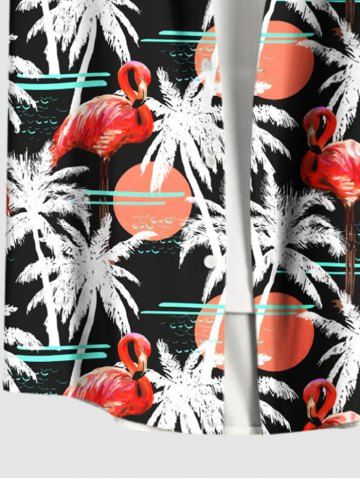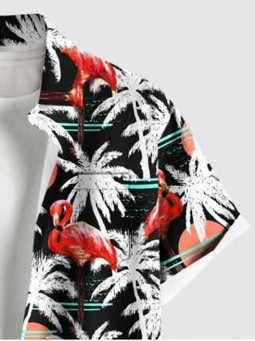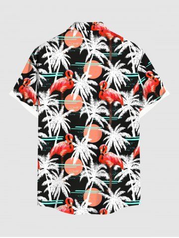 Plus Size Flamingo Coconut Tree Sun Print Buttons Pocket Hawaii Shirt For Men - Black - S