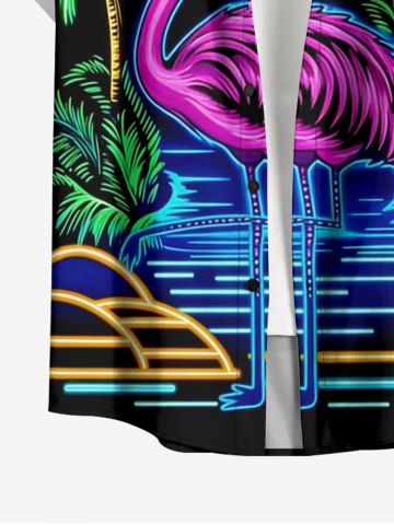 Plus Size Flamingo Coconut Tree Sun Print Buttons Pocket Hawaii Shirt For Men - Black - 5xl
