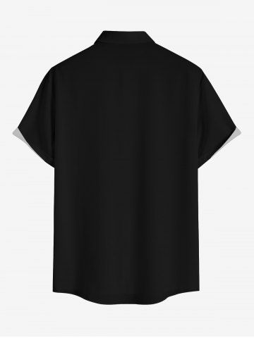 Plus Size Flamingo Coconut Tree Sun Print Buttons Pocket Hawaii Shirt For Men - Black - 6xl