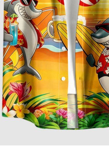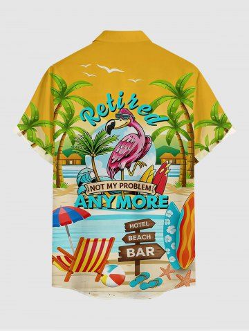 Plus Size Flamingo Coconut Tree Umbrella Starfish Print Buttons Pocket Hawaii Shirt For Men - Yellow - 4xl