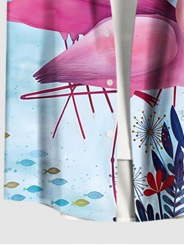 Short Sleeves Shirts > Plus Size Flamingo Flower Leaf Fish Print Hawaii Button Pocket Shirt For Men
