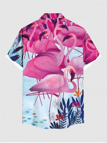 Short Sleeves Shirts > Plus Size Flamingo Flower Leaf Fish Print Hawaii Button Pocket Shirt For Men