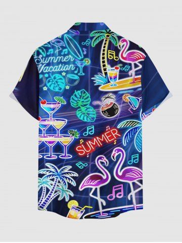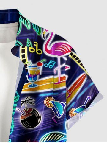 Plus Size Flamingo Fruit Juice Coconut Tree Print Buttons Pocket Hawaii Shirt For Men - Deep Blue - L