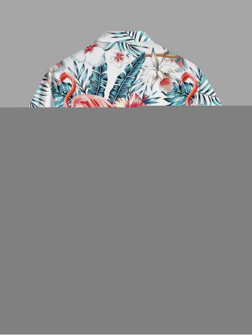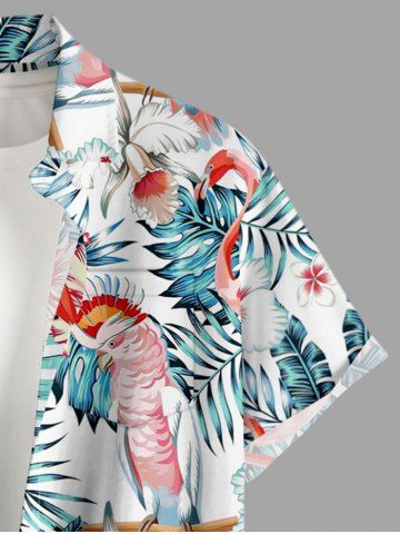 Short Sleeves Shirts > Plus Size Flamingo Parrot Hibiscus Flowers Leaf Print Buttons Pocket Hawaii Shirt For Men