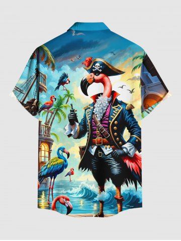 Short Sleeves Shirts > Plus Size Flamingo Pirate Coconut Tree Sea Waves Print Hawaii Button Pocket Shirt For Men