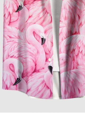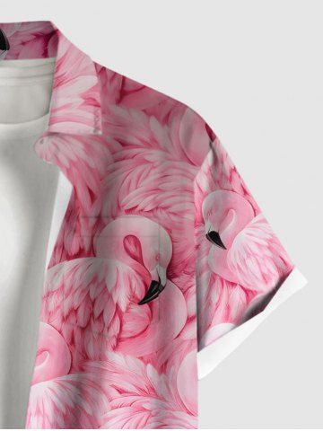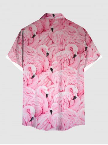 Plus Size Flamingo Print Buttons Pocket Hawaii Shirt For Men - Light Pink - S