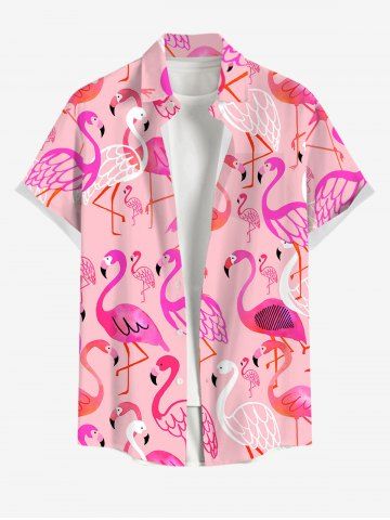 Plus Size Flamingo Print Buttons Pocket Hawaii Shirt For Men - Light Pink - 6xl