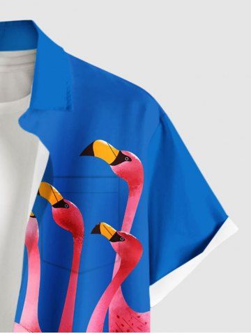Plus Size Flamingo Print Hawaii Button Pocket Shirt For Men - Sky Blue - Xl