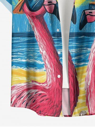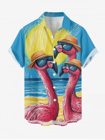 Short Sleeves Shirts > Plus Size Flamingo Sea Sun Painting Print Hawaii Button Pocket Shirt For Men