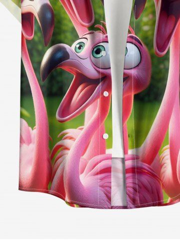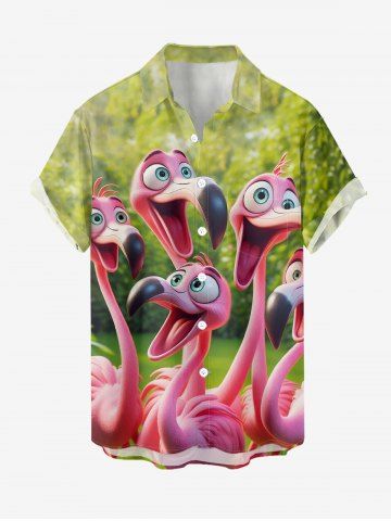 Short Sleeves Shirts > Plus Size Flamingo Trees Print Buttons Pocket Hawaii Shirt For Men