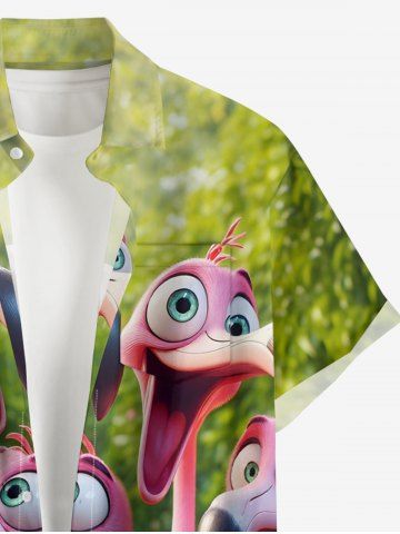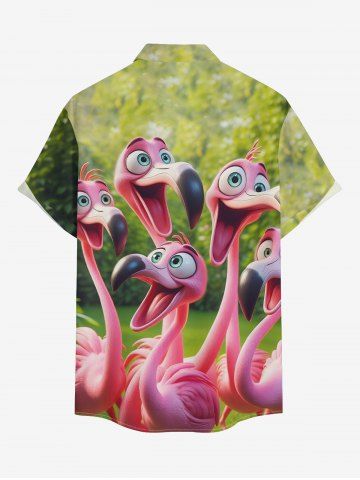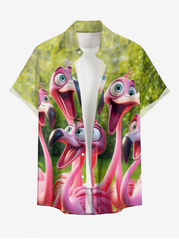 Plus Size Flamingo Trees Print Buttons Pocket Hawaii Shirt For Men - Jade Green - Xl