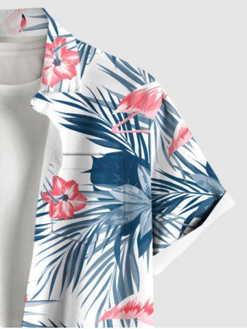 Short Sleeves Shirts > Plus Size Flamingo Tropical Flower Leaf Print Buttons Pocket Hawaii Shirt For Men