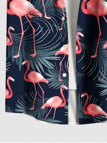 Short Sleeves Shirts > Plus Size Flamingo Tropical Leaf Print Buttons Pocket Hawaii Shirt For Men