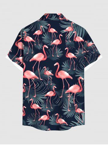 Short Sleeves Shirts > Plus Size Flamingo Tropical Leaf Print Buttons Pocket Hawaii Shirt For Men