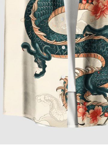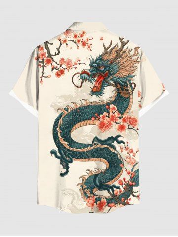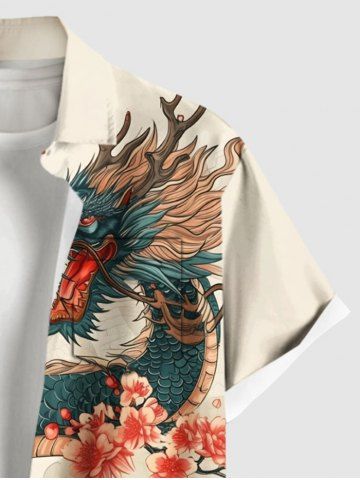 Short Sleeves Shirts > Plus Size Floral Branch Dragon Print Button Pocket Shirt For Men