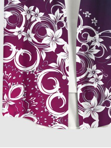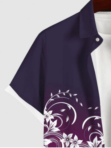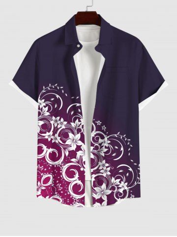 Short Sleeves Shirts > Plus Size Floral Branch Print Hawaii Ombre Button Pocket Shirt For Men