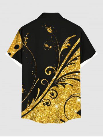 Plus Size Floral Colorblock Sparkling Sequin 3D Print Buttons Pocket Hawaii Shirt For Men - Black - 6xl