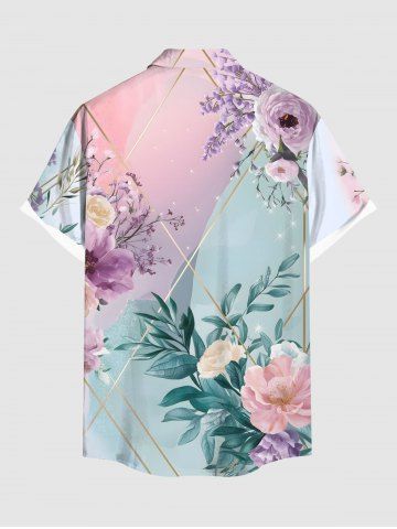 Plus Size Floral Leaf Branch Contrast Two Tone Print Hawaii Button Pocket Shirt For Men - Light Pink - 5xl