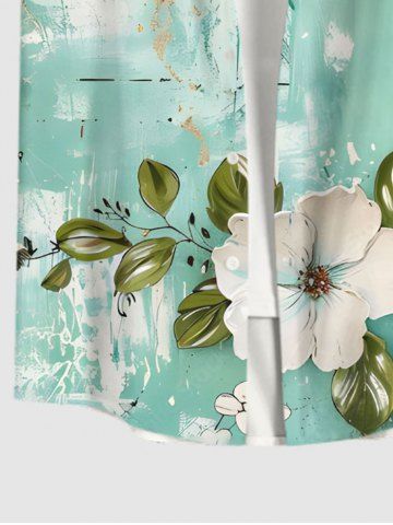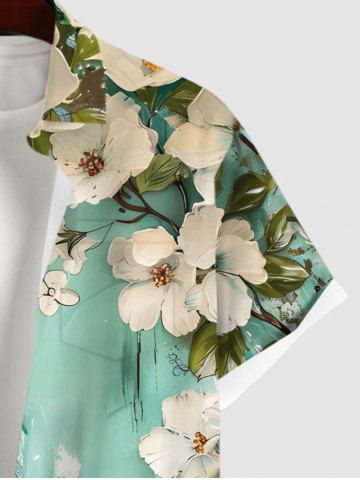 Plus Size Floral Leaf Sea Print Hawaii Button Pocket Shirt For Men - Light Green - 3xl