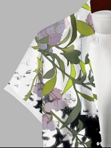 Short Sleeves Shirts > Plus Size Flower Leaf Branch Colorblock Print Hawaii Button Pocket Shirt For Men