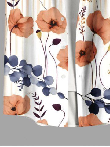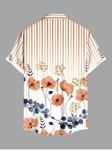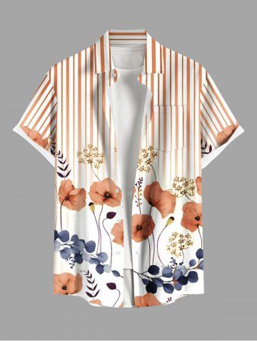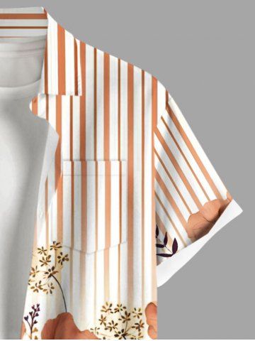 Plus Size Floral Leaves Branch Light Beam Striped Print Hawaii Button Pocket Shirt For Men - Light Orange - 4xl