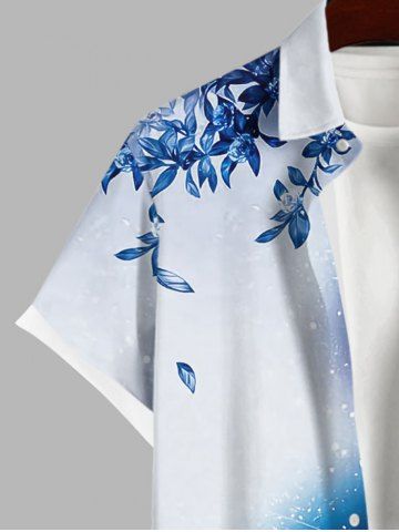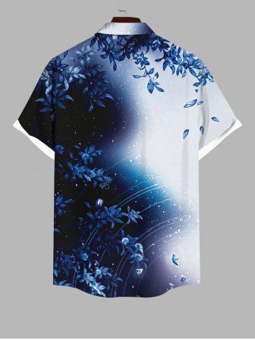Plus Size Floral Leaves Ombre Galaxy Print Hawaii Button Pocket Shirt For Men - Blue - Xl