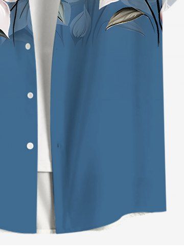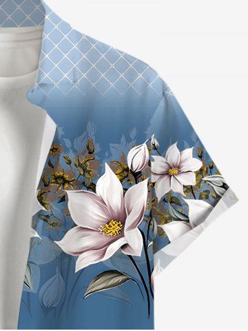 Plus Size Flower Leaf Plaid Ombre Print Hawaii Button Pocket Shirt For Men - Blue - 6xl