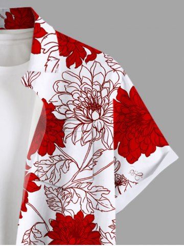 Plus Size Floral Leaves Print Hawaii Button Pocket Shirt For Men - Red - 4xl