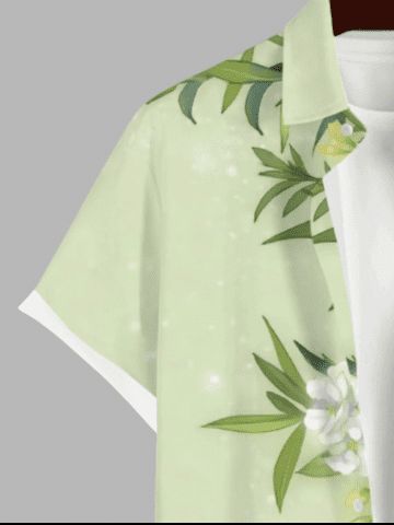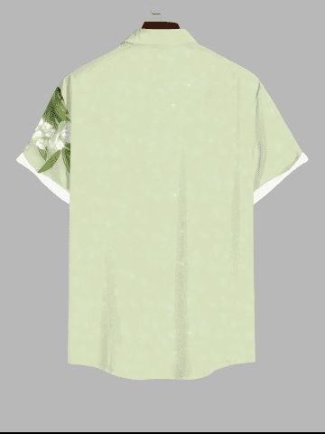Plus Size Flower Leaf Print Hawaii Button Pocket Shirt For Men - Light Green - S