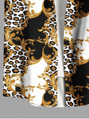 Short Sleeves Shirts > Plus Size Floral Leopard Colorblock Print Buttons Pocket Hawaii Shirt For Men