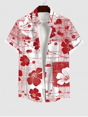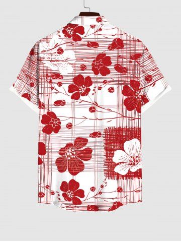 Short Sleeves Shirts > Plus Size Floral Line Braided Print Hawaii Button Pocket Shirt For Men