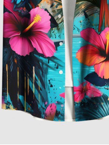Short Sleeves Shirts > Plus Size Floral Parrot Tropical Leaves Sea Print Hawaii Button Pocket Shirt For Men