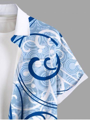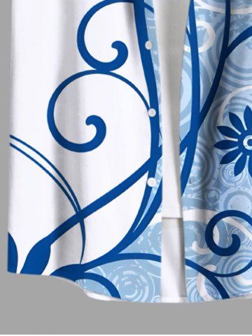 Plus Size Floral Pattern Print Buttons Pocket Hawaii Shirt For Men - Blue - 3xl
