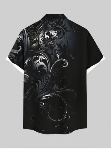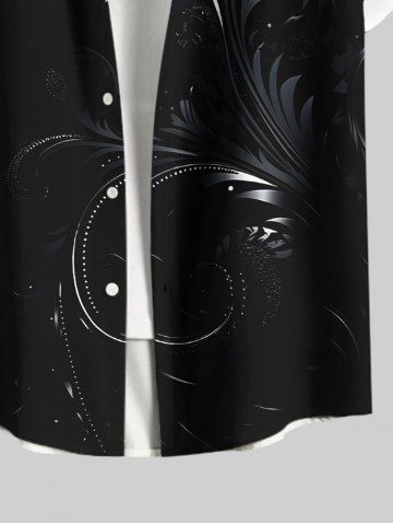 Plus Size Floral Pattern Print Buttons Pocket Hawaii Shirt For Men - Black - 6xl