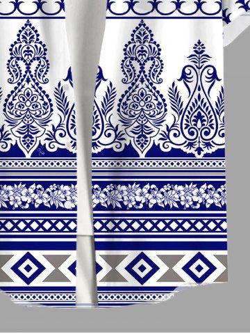 Plus Size Floral Pattern Print Buttons Pocket Shirt For Men - White - M