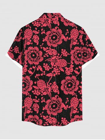 Plus Size Floral Pine Cones Print Hawaii Button Pocket Shirt For Men - Red - M